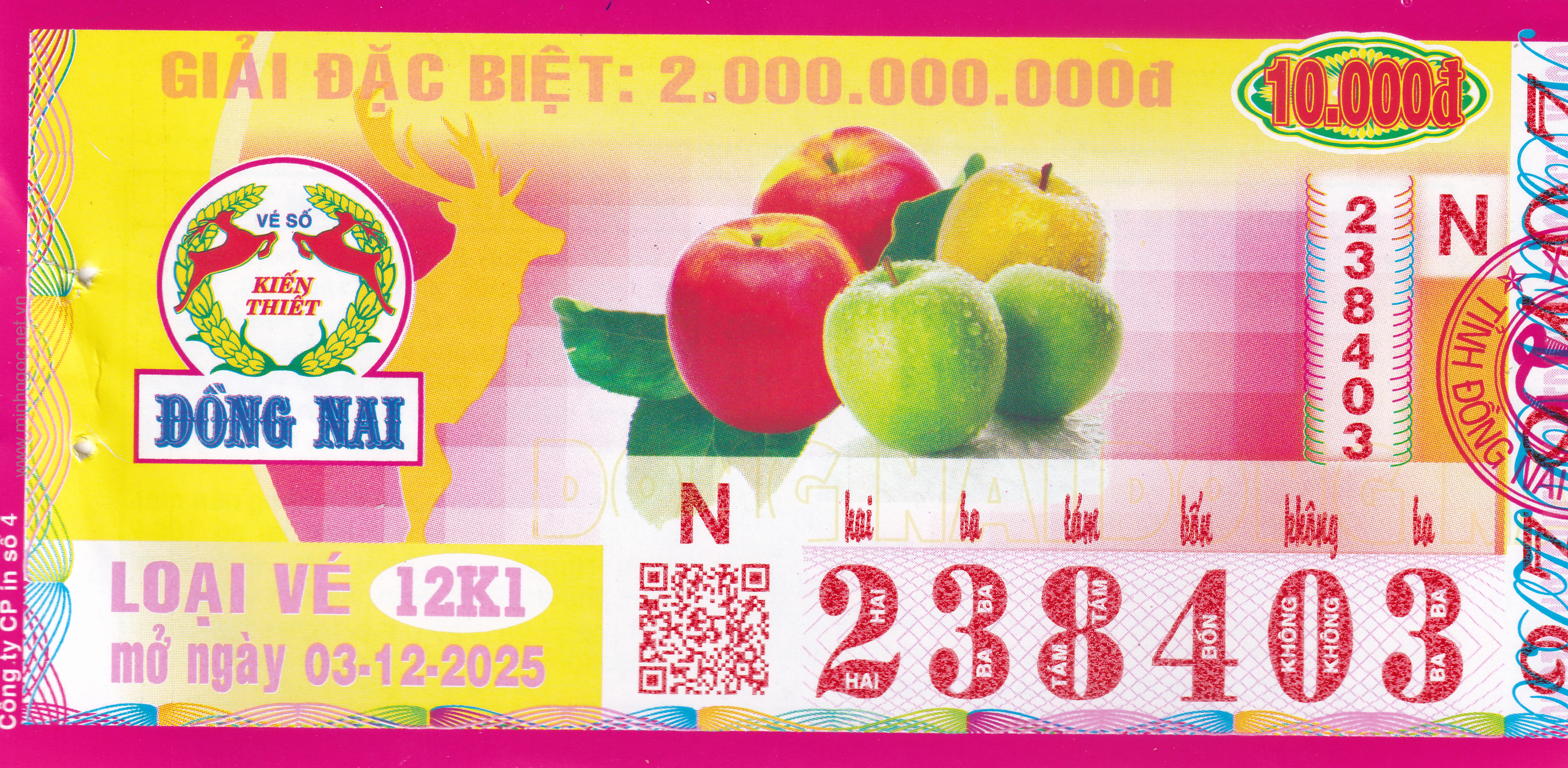 Mẫu vé số Miền Nam ngày 03/12/2025