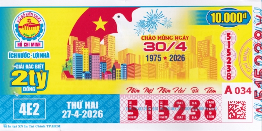 Mẫu vé số Miền Nam ngày 27/04/2026