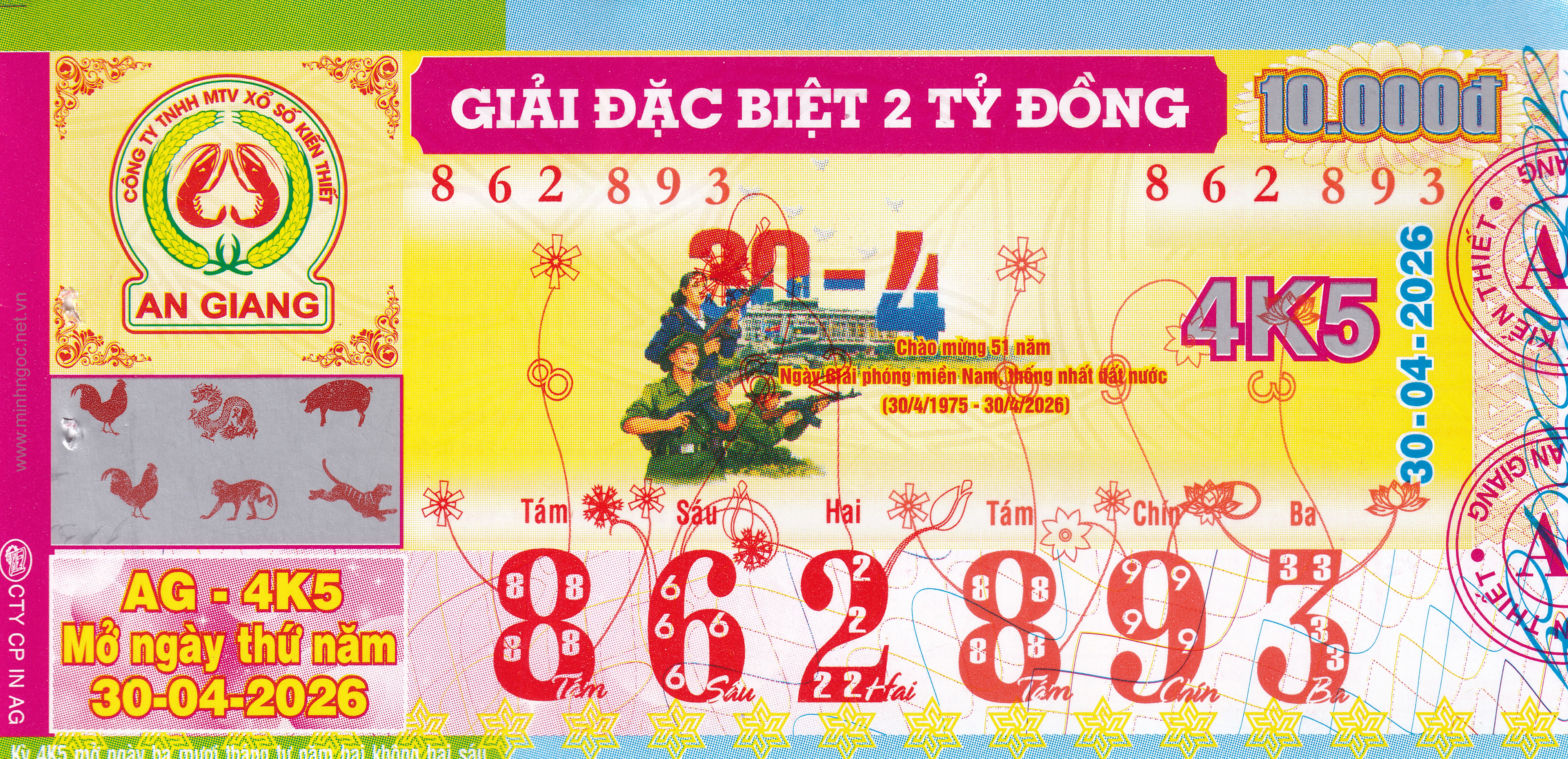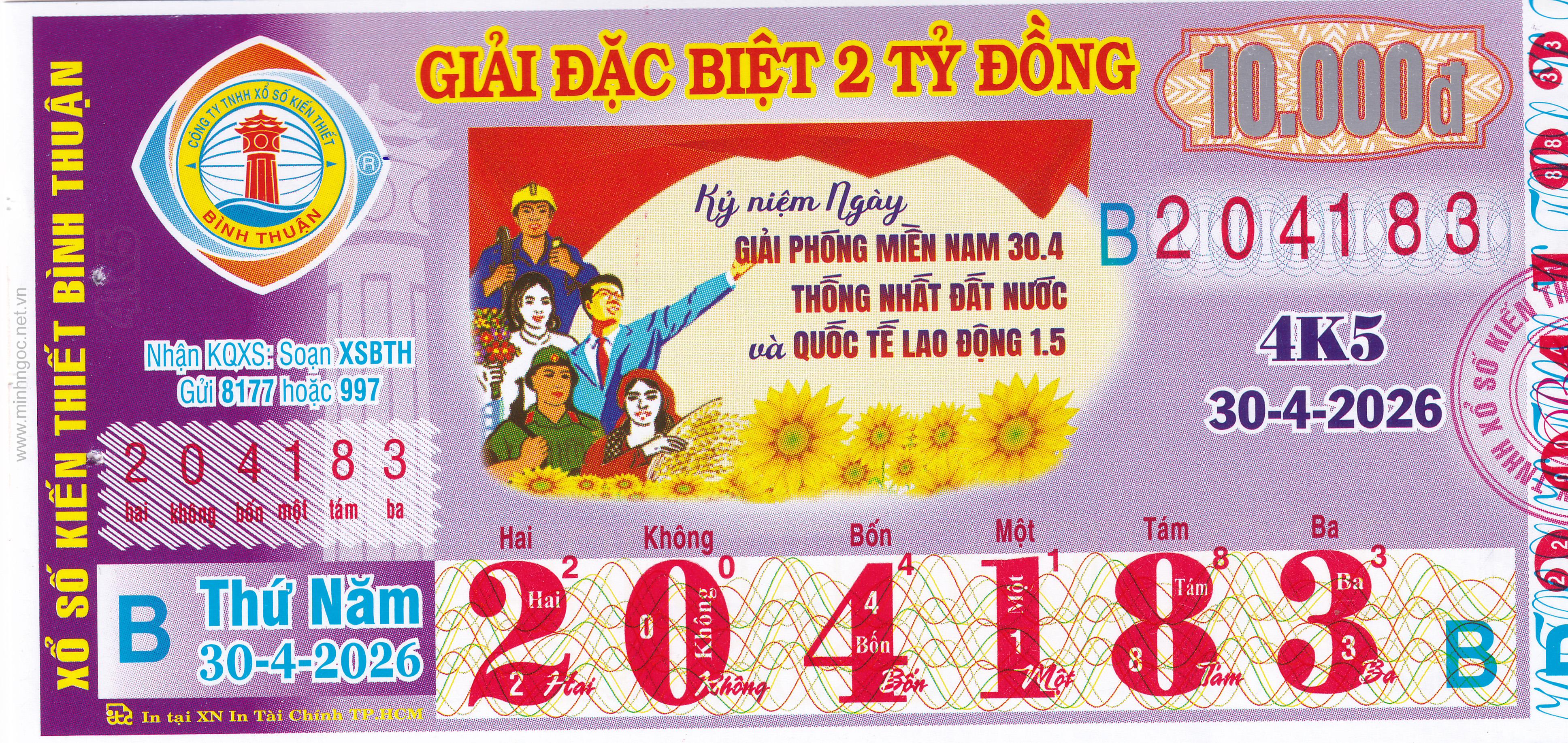 Mẫu vé số Miền Nam ngày 30/04/2026