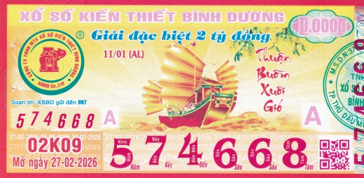 Mẫu vé số Bình Dương ngày 27/03/2026