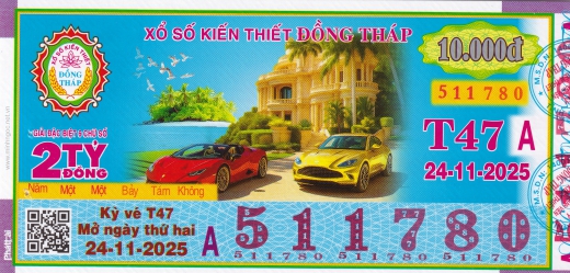 Mẫu vé số Đồng Tháp ngày 08/12/2025