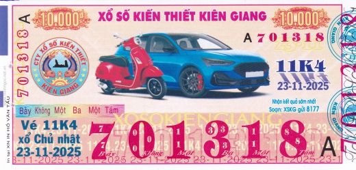 Mẫu vé số Kiên Giang ngày 28/12/2025