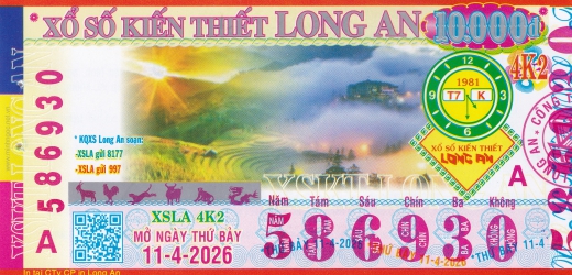 Mẫu vé số Long An ngày 11/04/2026