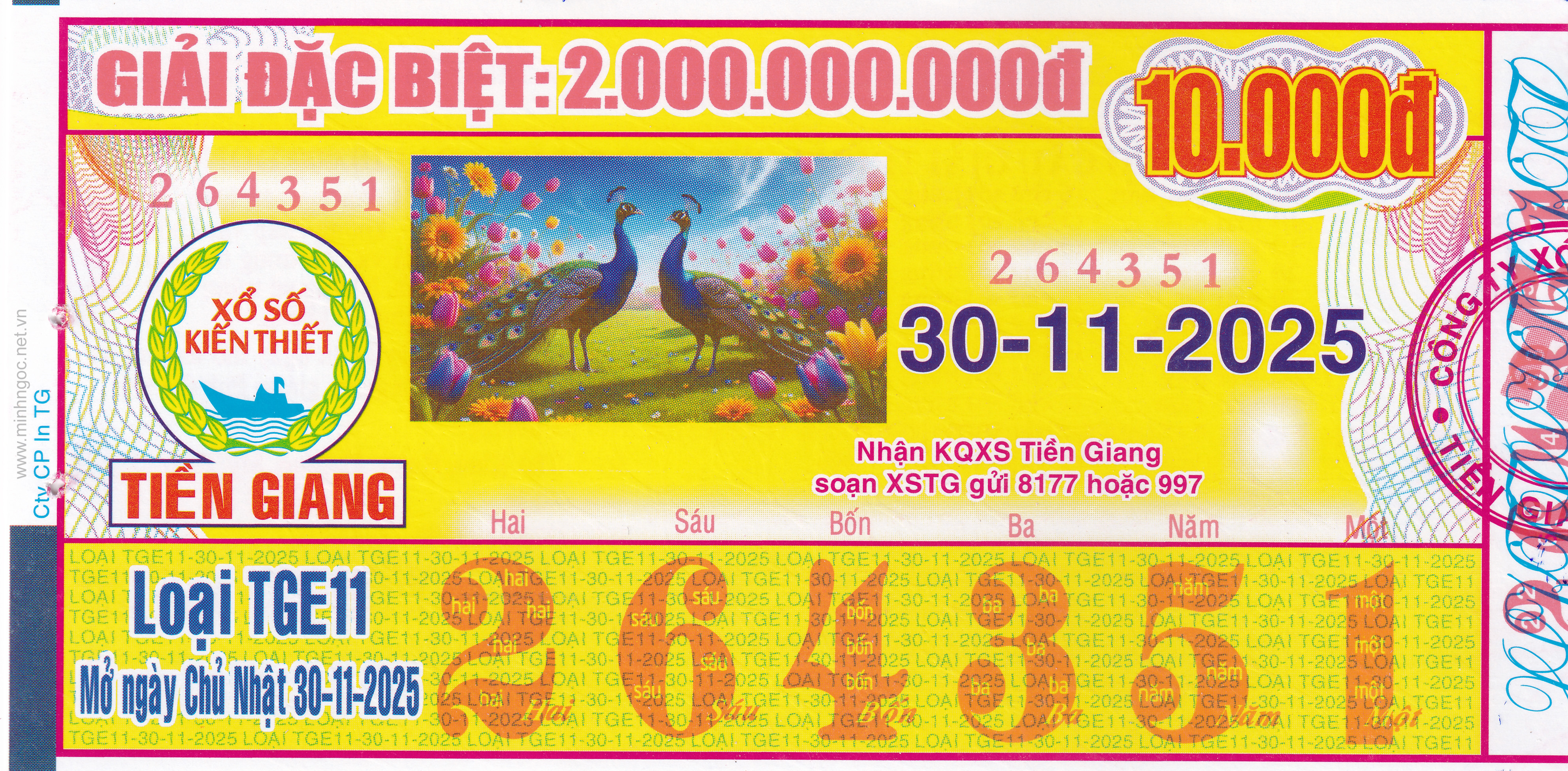 Mẫu vé số Tiền Giang ngày 28/12/2025