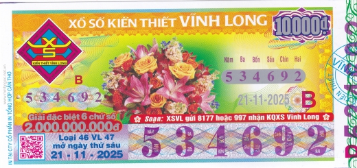 Mẫu vé số Vĩnh Long ngày 28/11/2025